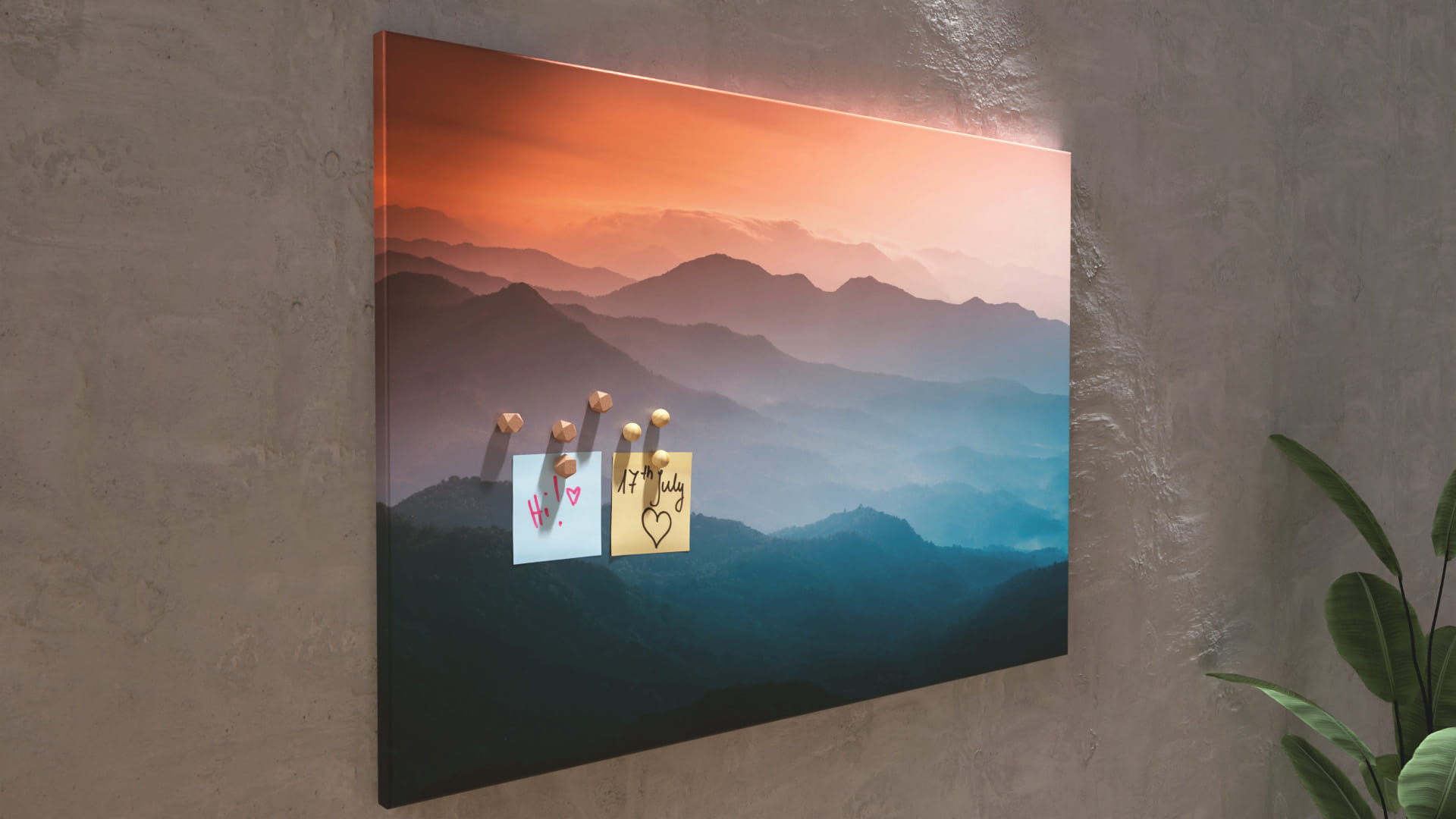 Podstawą CANVASboards jest metalowa tablica o strukturze płótna i matowym wykończeniu. Posiada również unikalne właściwości magnetyczne – na powierzchnię możesz przyczepiać magnesy każdego rodzaju.