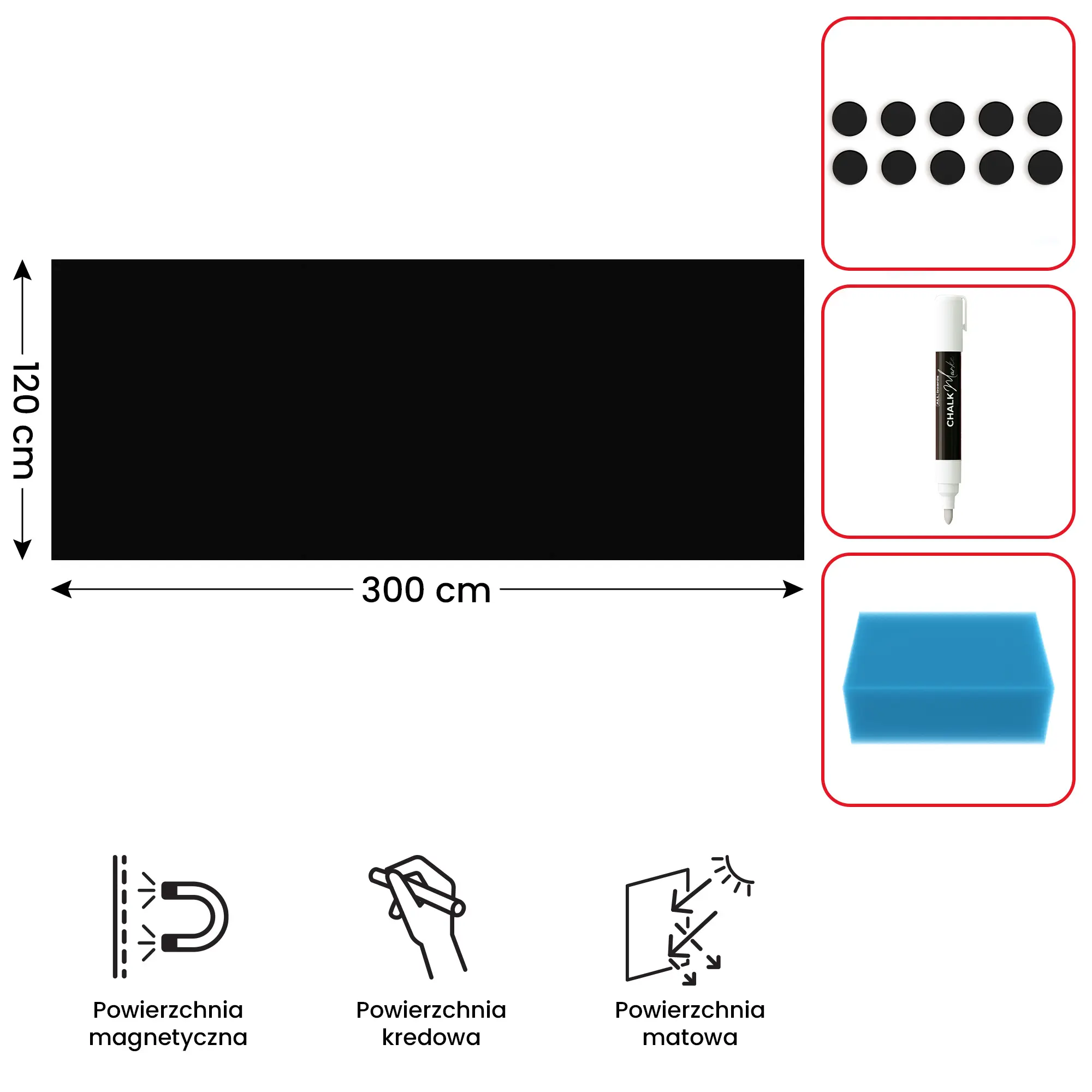 Tablica magnetyczna bezramowa kredowa panel magnetyczny SLIMboard 300x120 cm + GRATISY