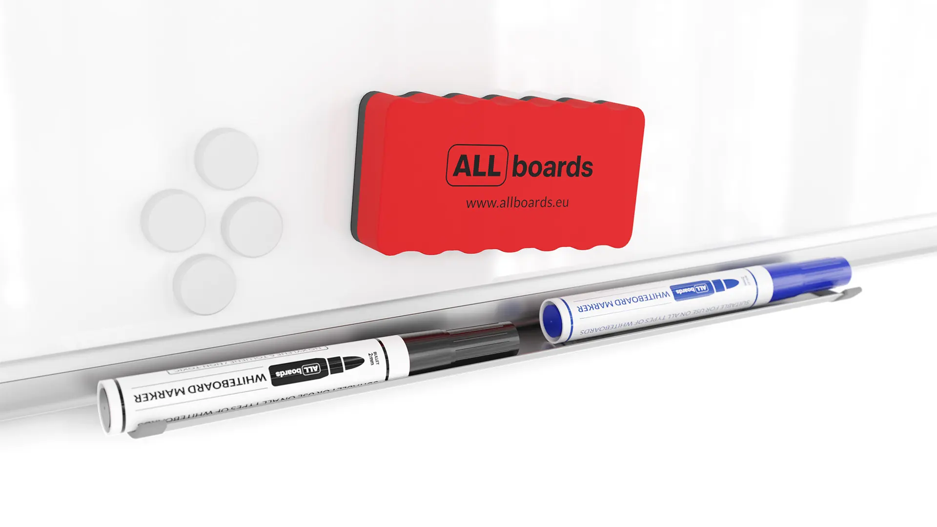 Tablica ALLboards jest znakomicie wyposażona, tak byś natychmiast mógł przejść do działania! W zestawie z tablicą znajdziesz zestaw montażowy, półkę na akcesoria (która bez problemu może zostać zdemontowana w dowolnym momencie), gąbkę magnetyczną + 6 białych magnesów oraz 2 markery suchościeralne.