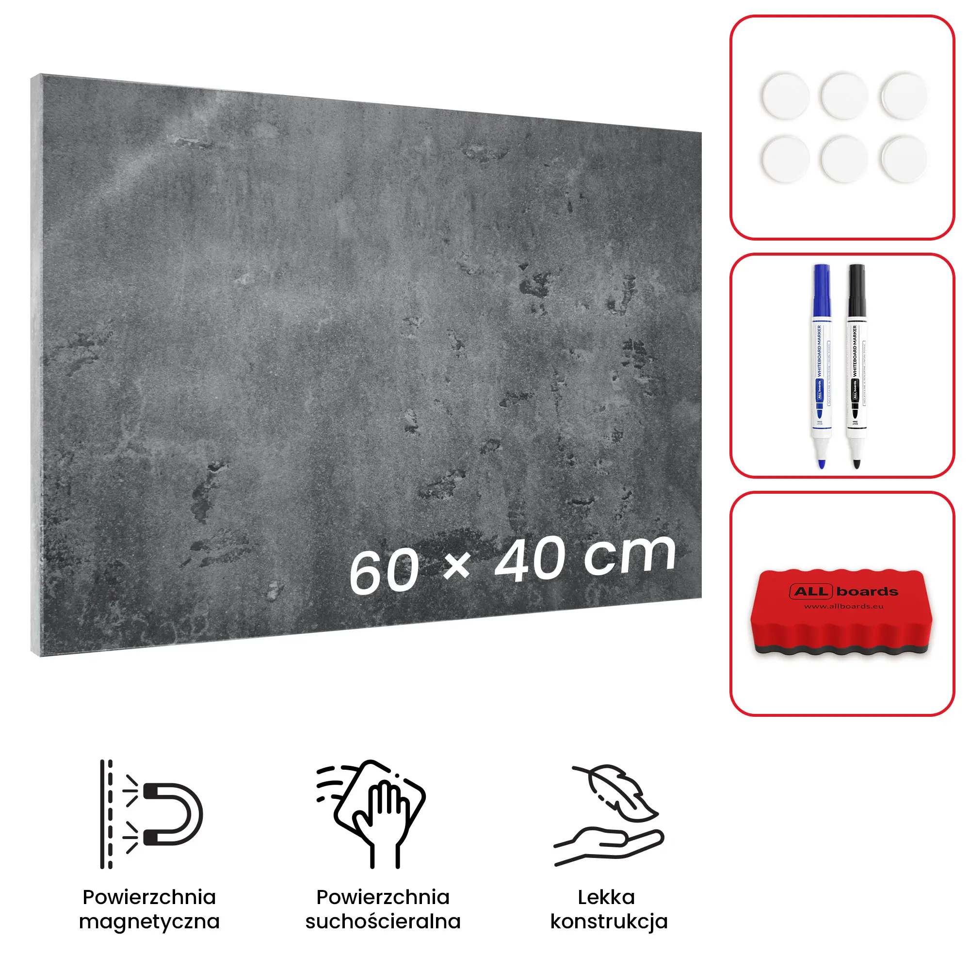 Tablica magnetyczna na magnesy METALboards imitacja betonu 60x40 cm + zestaw akcesoriów GRATIS