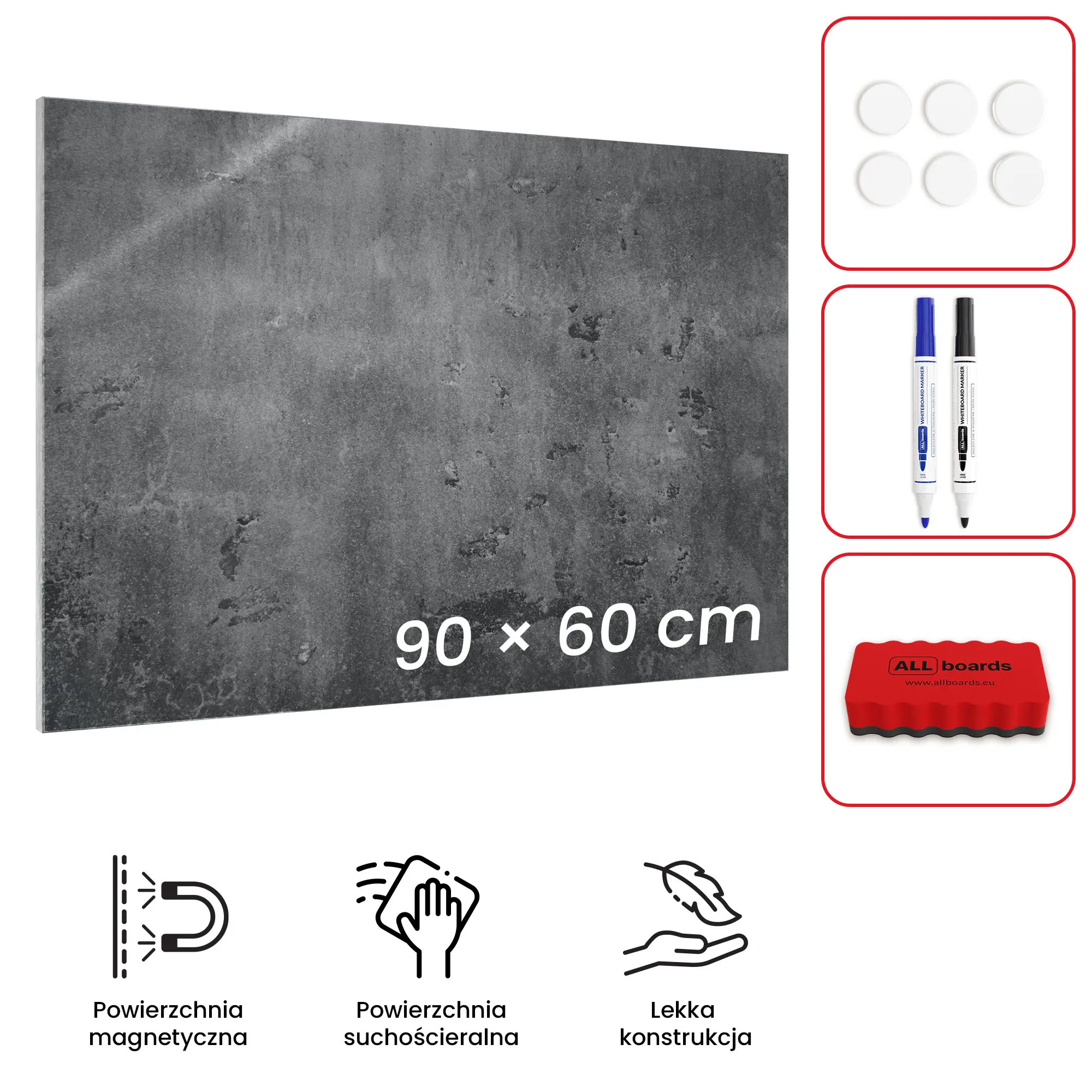 Tablica magnetyczna na magnesy METALboards imitacja betonu 90x60 cm + zestaw akcesoriów GRATIS