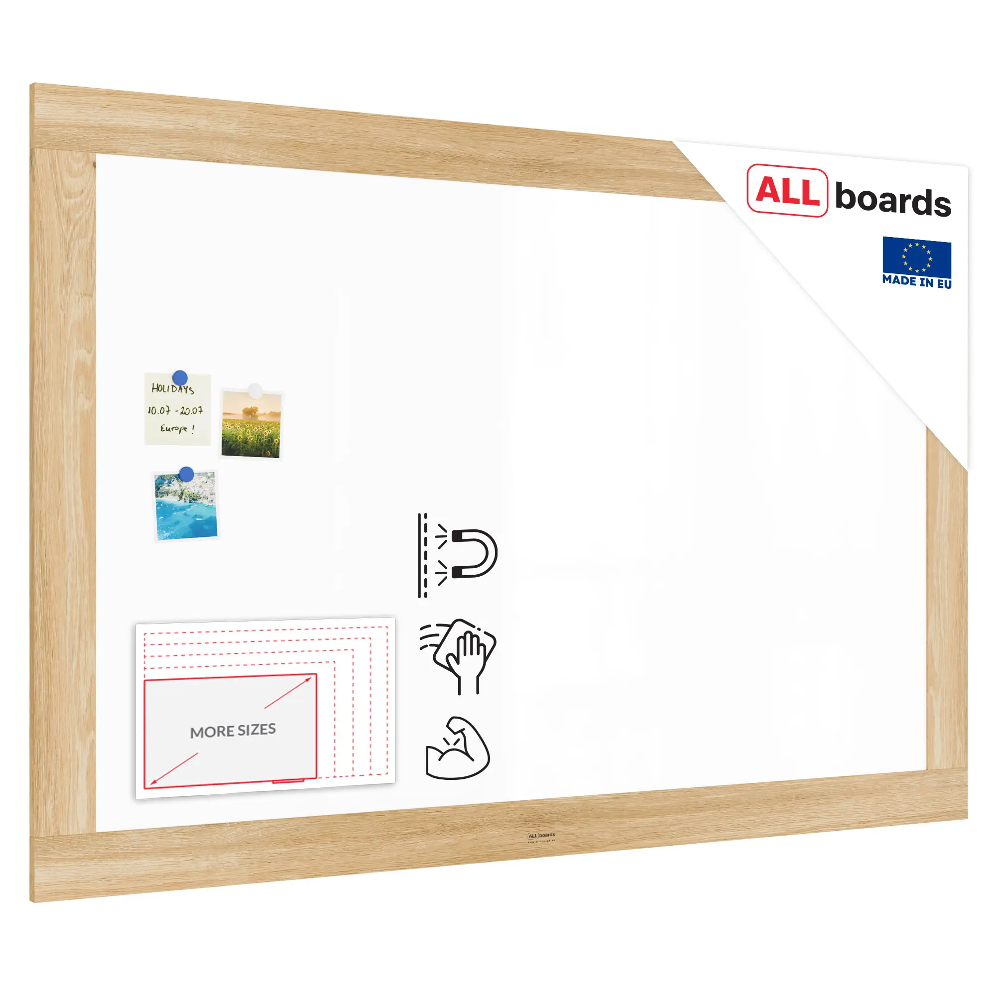 - MAGNETYCZNOŚĆ — magnetyczne właściwości produktu sprawiają, że możesz przyczepiać do niego różnego rodzaju magnesy, od klasycznych, po pamiątkowe. Z powodzeniem wykorzystasz go nie tylko do organizacji, ale również dekoracji przestrzeni.