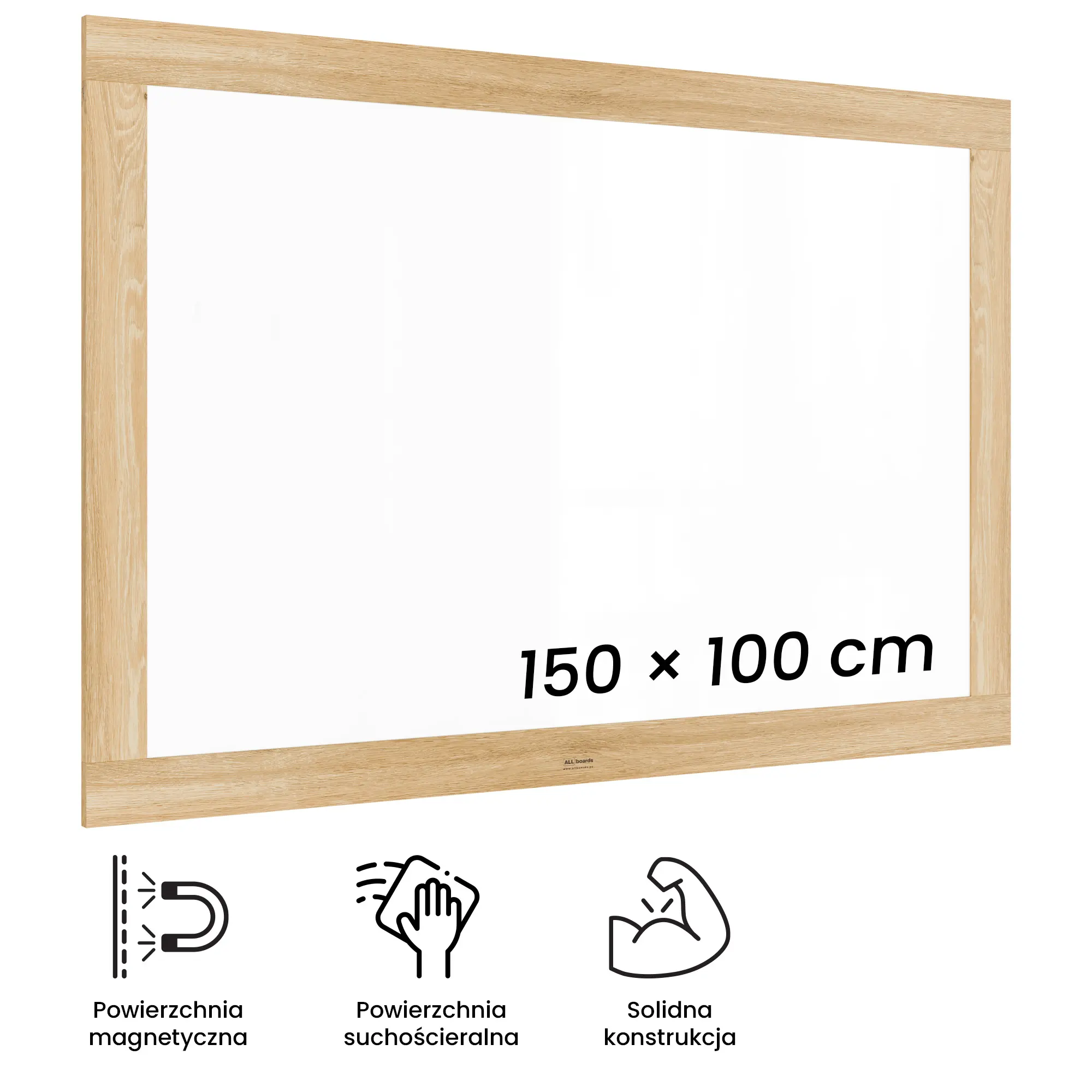 Tablica suchościeralno-magnetyczna PREMIUM 150x100 cm w masywnej ramie koloru dębowego