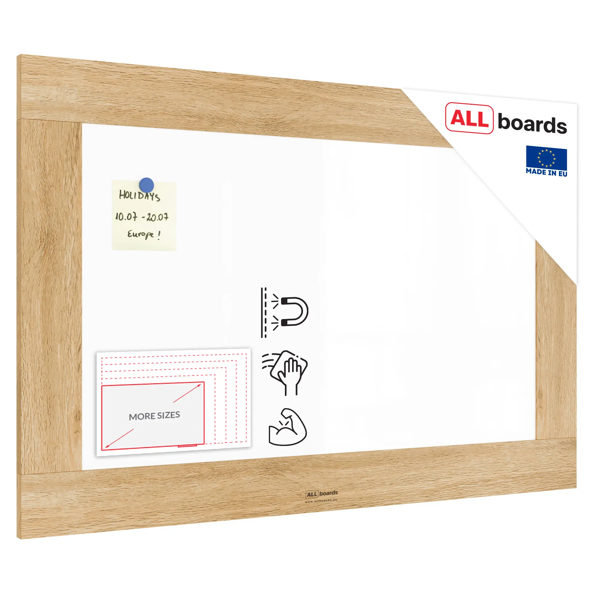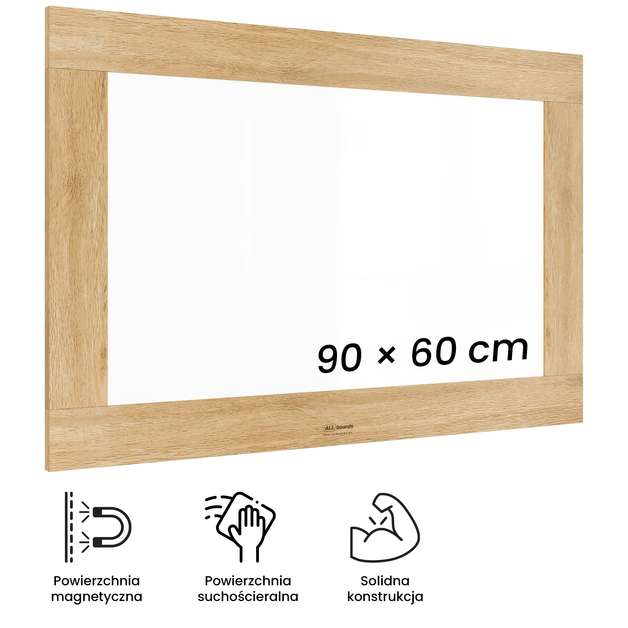 Tablica suchościeralno-magnetyczna PREMIUM 90x60 cm w masywnej ramie koloru dębowego