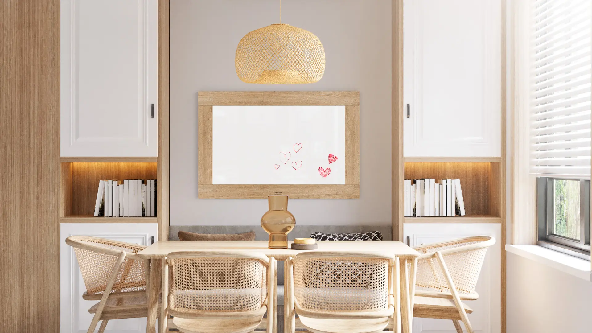 - ESTETYCZNY, WYGODNY MONTAŻ – możesz zawiesić ją na ścianie pionowo lub poziomo, dopasowując ustawienie do potrzeb. Elementy montażowe pozostają niewidoczne, a tablica wygląda świetnie w każdej aranżacji.