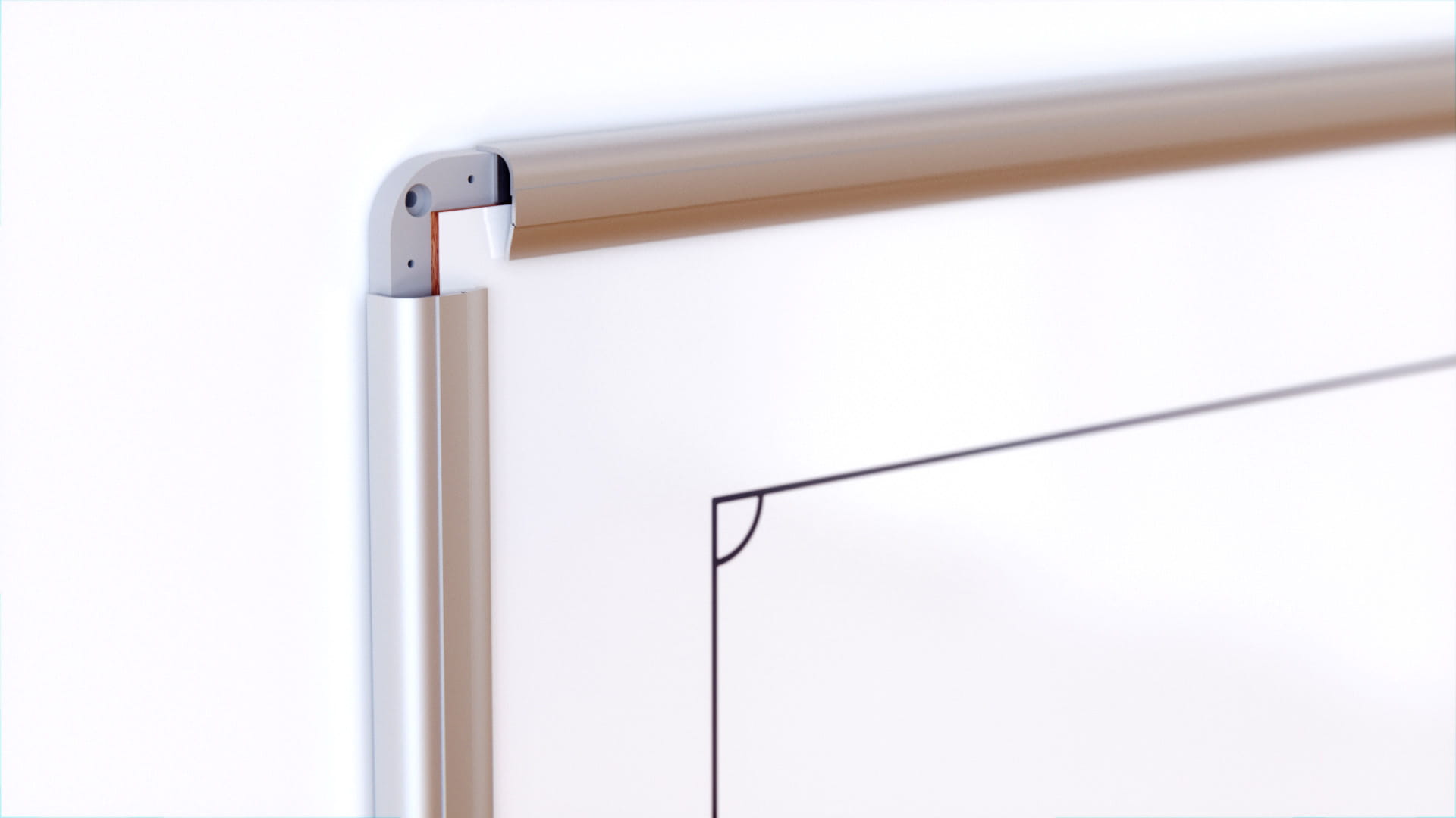 Tablica ALLboards otoczona jest elegancką, szarą, aluminiową ramą PREMIUM EXPO. Rama została zabezpieczona przed korozją w procesie anodowania. Anodowanie to proces, w czasie którego na powierzchni metalu wytwarza się warstwa tlenku glinu. Dzięki niemu powierzchnia ramy zostaje nie tylko zabezpieczona przed korozją ale także staje się gładka i lśniąca. Mimo wielkiej wytrzymałości, szerokość ramy to zaledwie 2 cm.