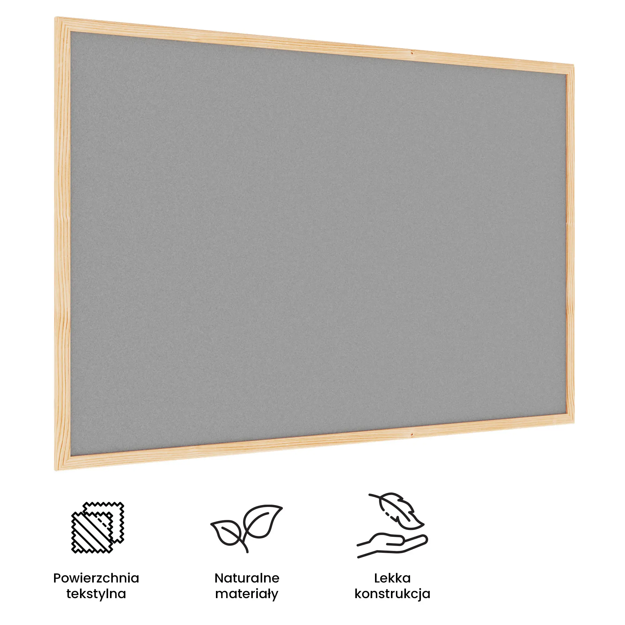 Tablica tekstylna (filcowa) 80x50 cm SZARA w ramie drewnianej