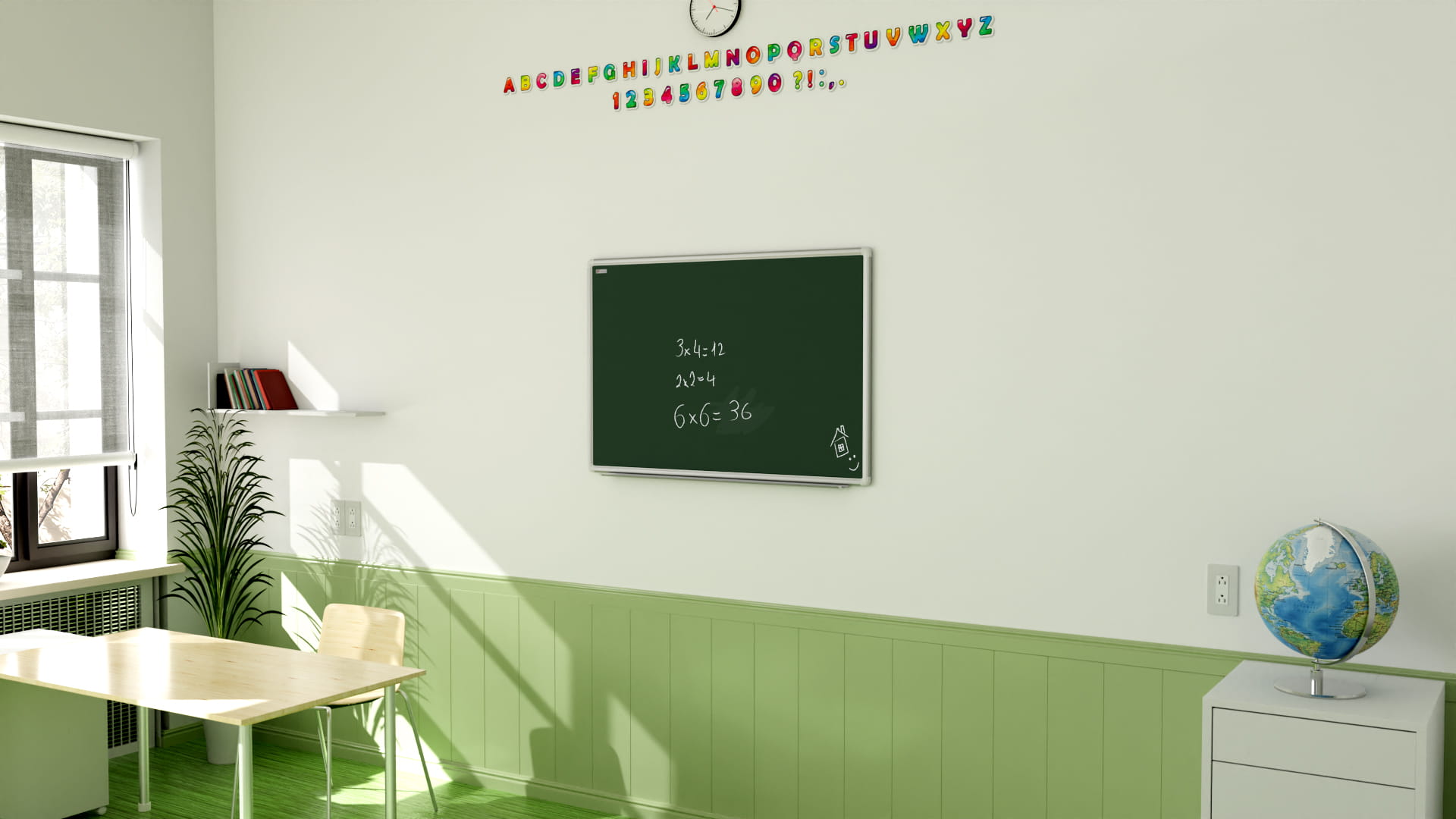 Zielone tablice magnetyczne przeznaczone do pisania kredą. Dzięki właściwością magnetycznym istnieje możliwość stosowania magnesów.