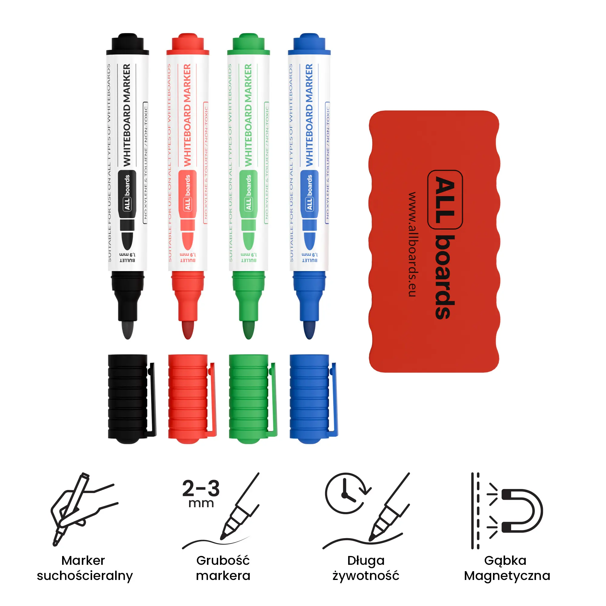 Zestaw - gąbka magnetyczna + 4 markery suchościeralne